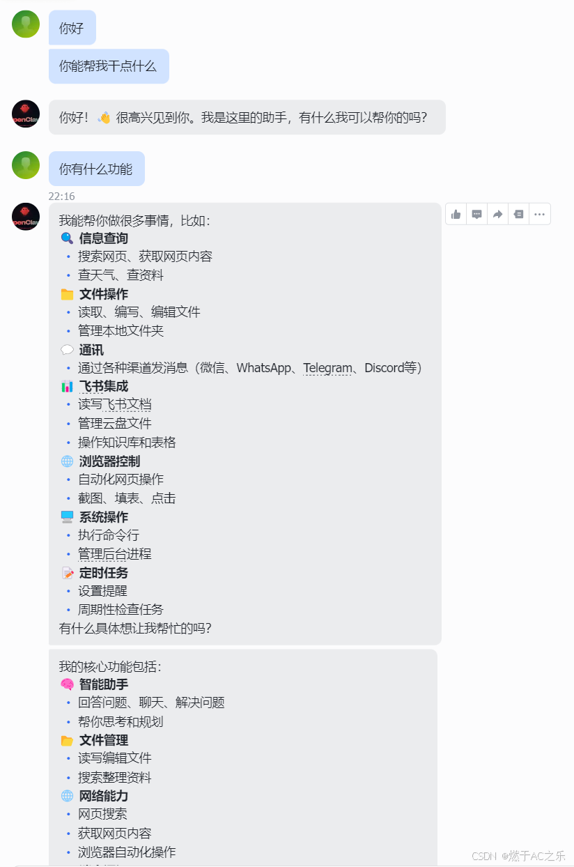 通过飞书插件,OpenClaw可以:
