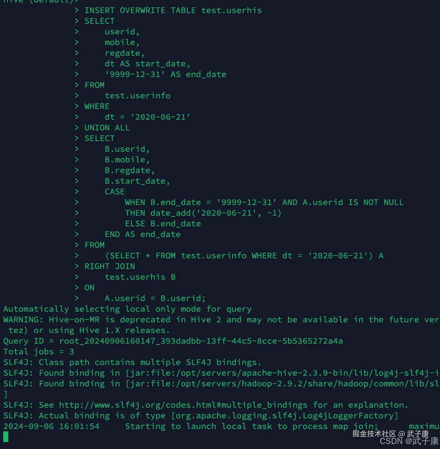 | 当天无数据仍执行成功但结果错误 | 空分区参与 UNION ALL,导致只保留历史或误闭链 | 先查 select count(1) from userinfo where dt='$do_date' | 无数据直接退出;增加前置校验 |