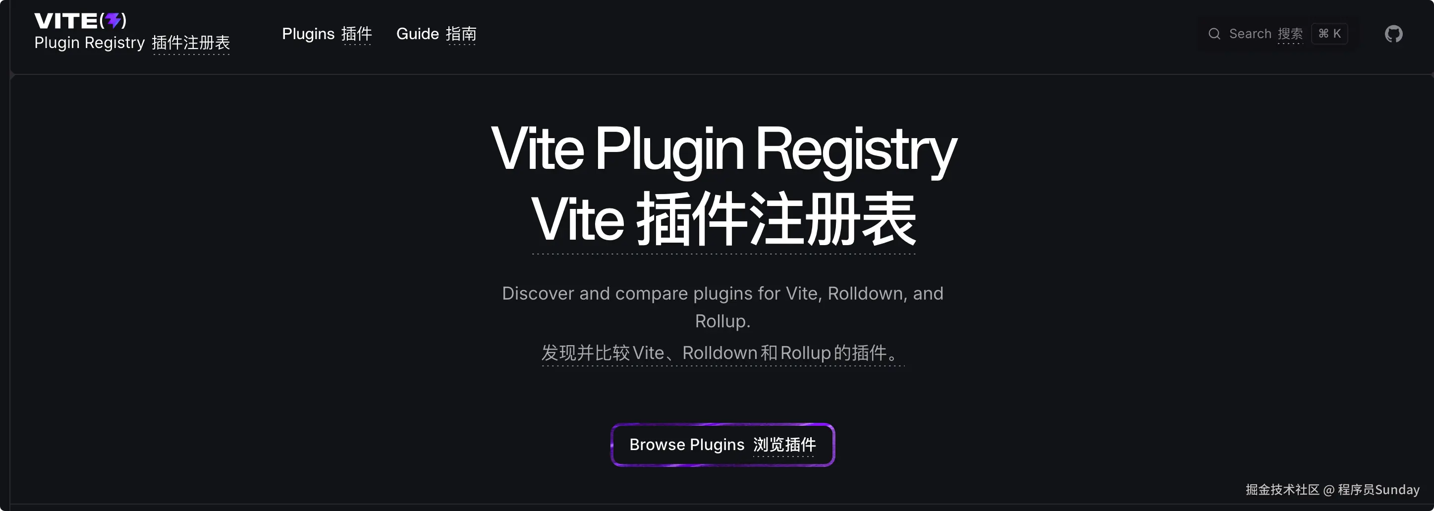registry.vite.dev,用来集中检索 Vite、Rolldown、Rollup 的插件生态,并且每天从 npm 拉数据更新。就是下面这个东西