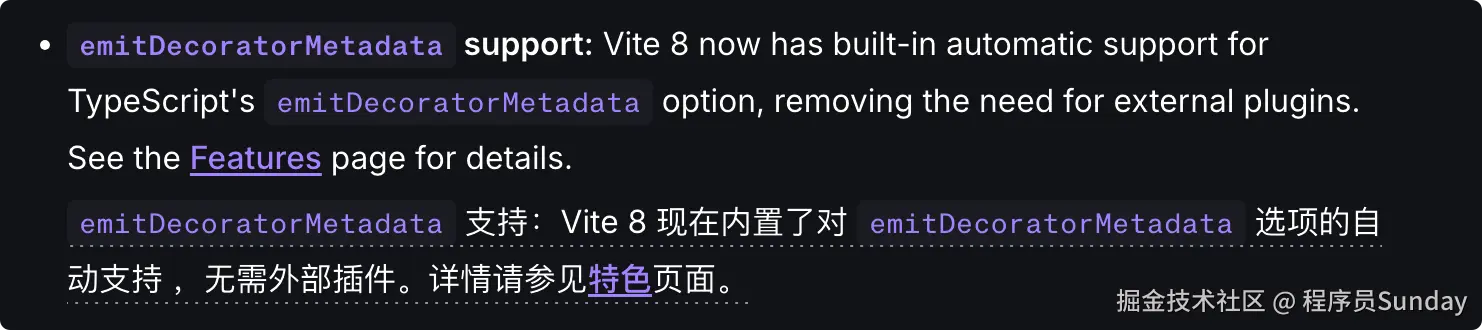 Vite 8 增加了对 TypeScript emitDecoratorMetadata 的内置自动支持。