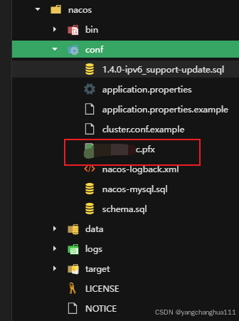 然后把这个.pfx文件上传到 Nacos 服务器的 conf目录。