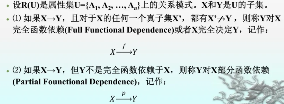 注意:R(U)的一切具体关系r都要满足函数依赖的约束条件