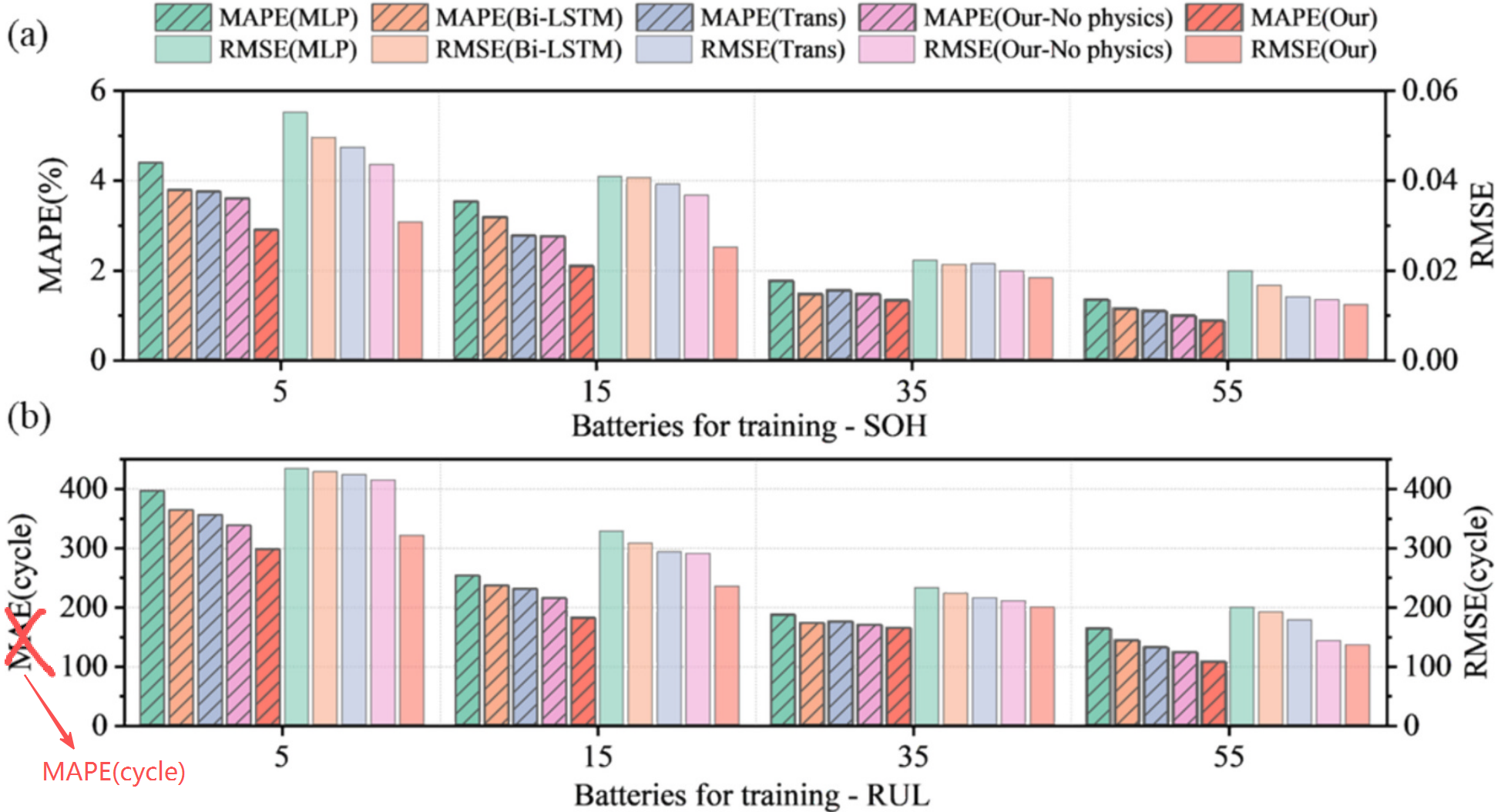 - 在极端小样本场景(仅5或15个电池数据)下,鲁棒性明显优于对比模型