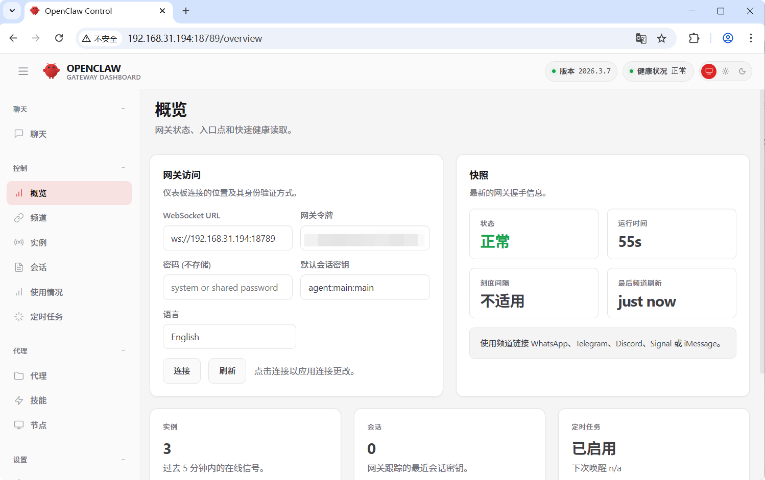 浏览器进入该控制台,看到网关正常就表示可用了