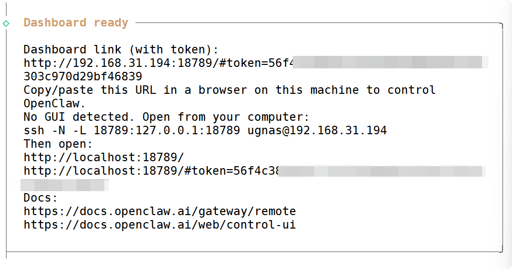 | Gateway token(网关令牌) | 留空回车,自动生成 |