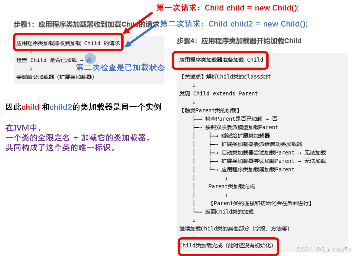 步骤1:应用程序类加载器收到加载Child的请求