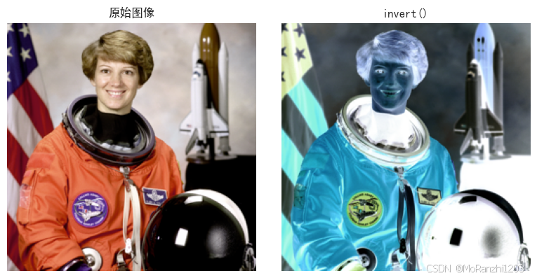 invert() 用于对图像进行反相处理。对于 8 位图像,其形式可写为: