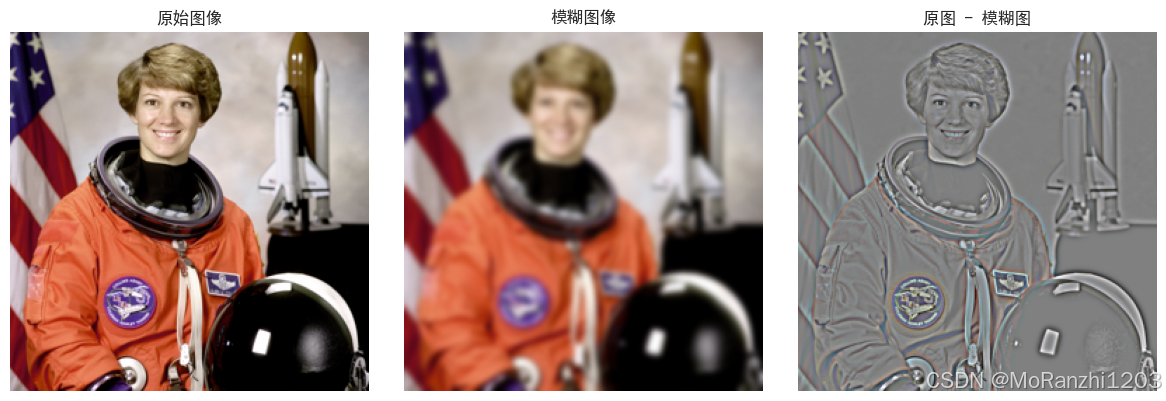 这个结果可以近似看作原图中被模糊过程削弱掉的局部高频细节。这里加入 offset=128,是为了让正负差异在可视化时更加明显。