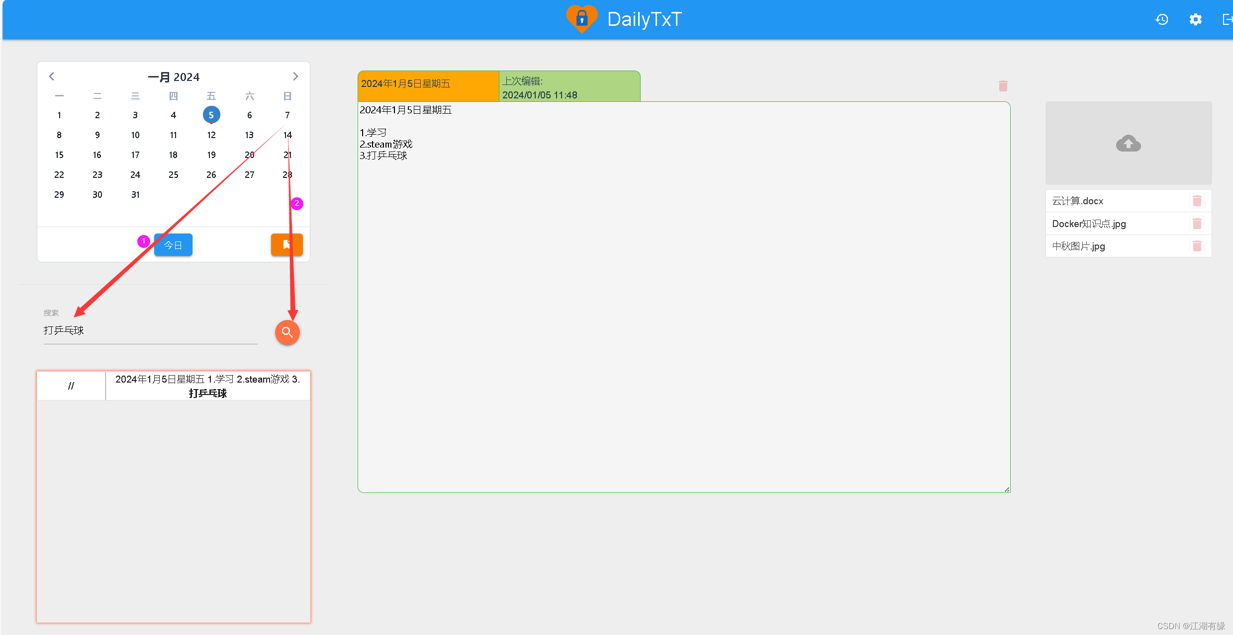 DailyTxT是一款方便实用的日记工具,特别适合个人日常工作与学习使用。DailyTxT使用docker方式部署非常简单,界面美观简洁。通过左侧的日历栏,可以快速查看每日日记,搜索功能也非常强大,能够通过关键字快速找到相关日记。DailyTxT还具有加密功能,保障了我们的日记安全性。无论是记录日常生活还是重要事件,DailyTxT都是一个值得尝试的应用程序,它的易用性和加密功能让我们能够方便地记录日记笔记等。