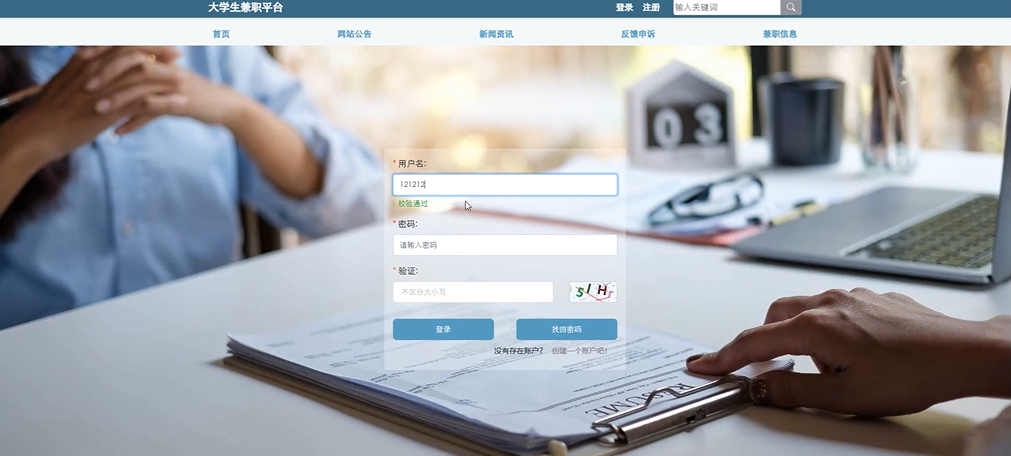 在本次主要测试用户登录、修改密码以及兼职信息添加、查看、搜索、删除业务流程操作。验证所有操作都能够正常运行,因此能够保证本次设计的,已实现的功能能够正常运行并且相关数据库的信息也同样保存正确。