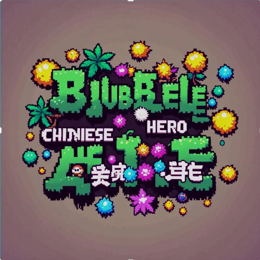 中文字体"气泡英雄"像素风格卡通字,笔触方正,
