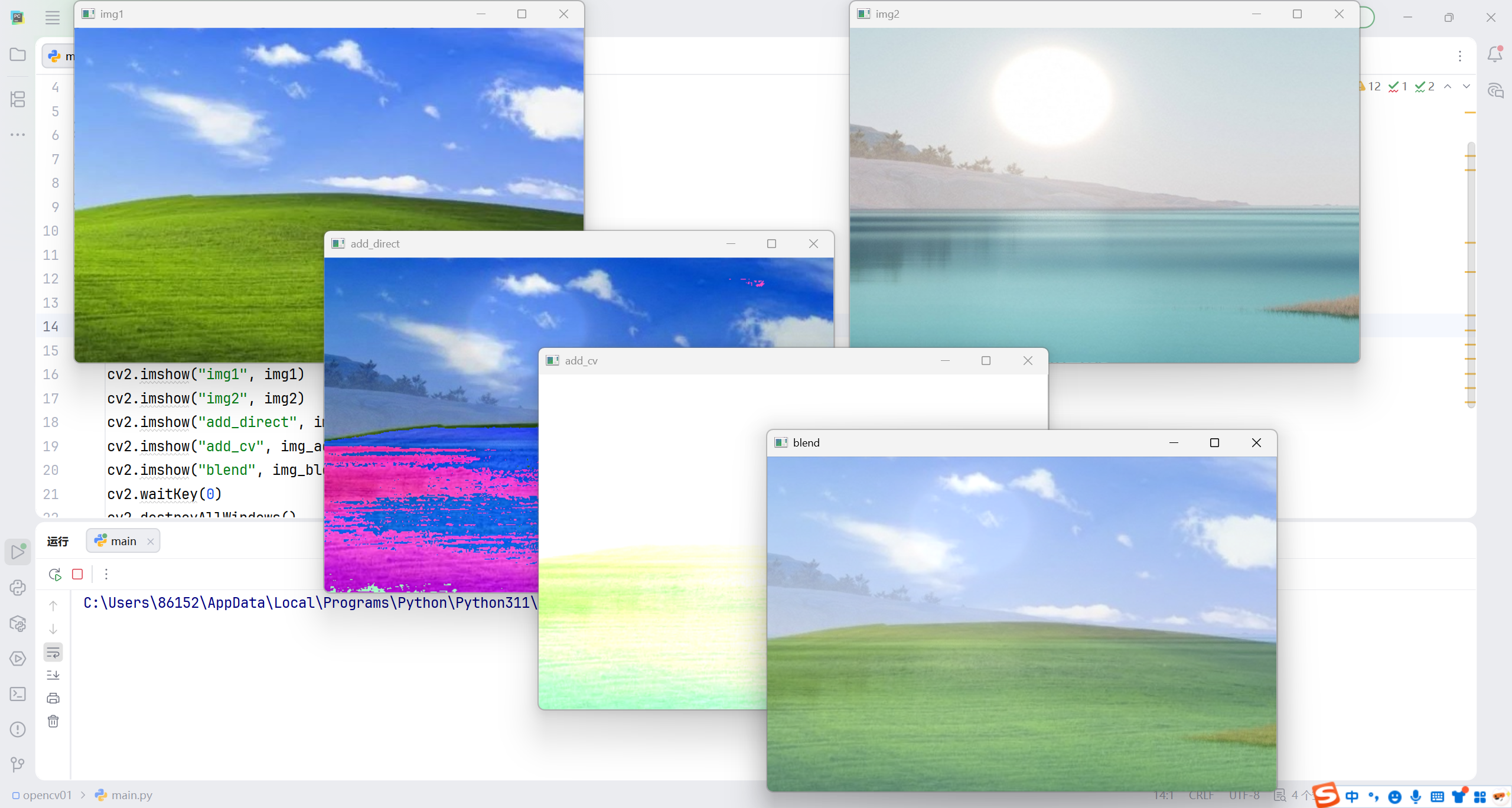 1.直接数组运算(a + b),这种方法是逐像素加减,这种方法虽然语法简单,但像素值超过 255 时会取模(如 256→0),导致颜色失真
