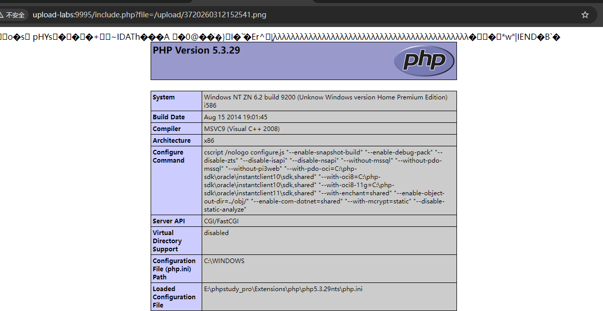 shell.jpg,内容为<?php phpinfo(); ?>,并通过LFI访问/includes/index.php?page=uploads/shell.jpg(假设LFI可包含任意文件)。 - 条件:应用中存在LFI漏洞,且上传目录在包含路径内。