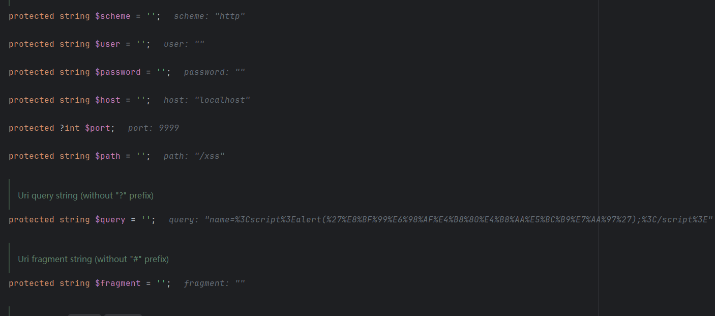 含义:解析后的查询参数(来自 URL 中 ? 后面的部分)。如果尚未解析或设置,则为 null。一旦通过 withQueryParams() 设置或内部解析,就会变成一个关联数组(如 ['foo' => 'bar'])。