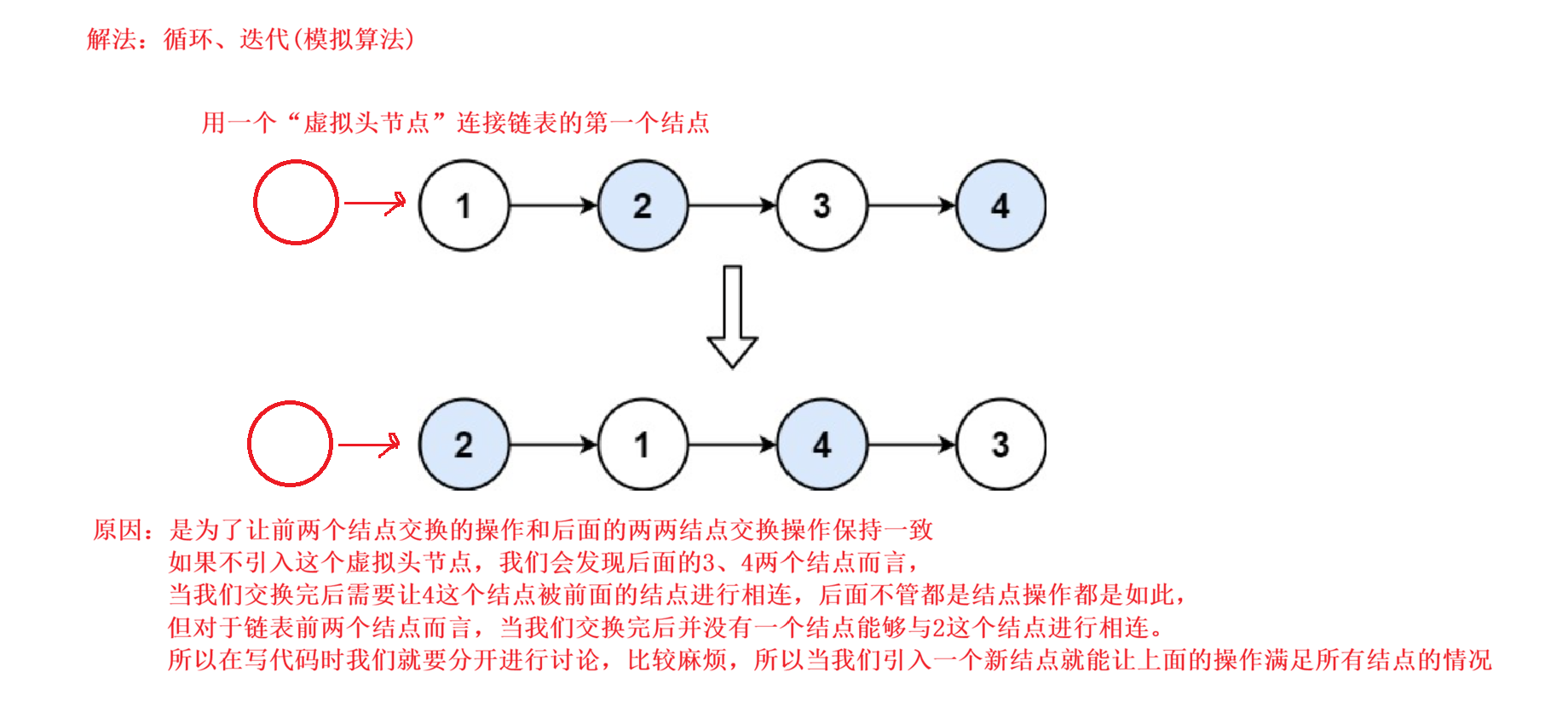只需要把题目示例画图画出来模拟交换过程即可,但必须要通过画图来进行理解操作过程!