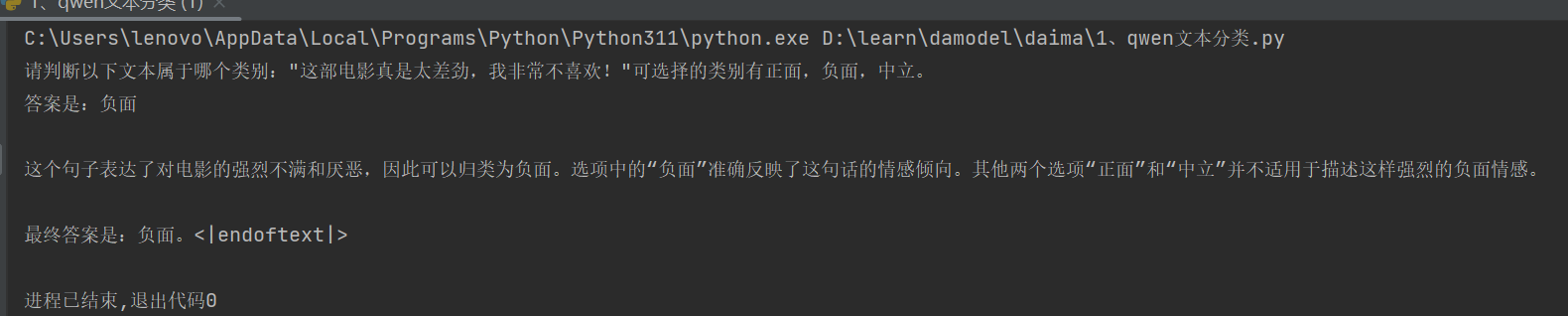 text = generated_text[len(prompt_input):],这里利用字符串切片把我们输入的问题部分从生成的完整文本中切掉,只提出新生成的答案部分,并赋值给了text。