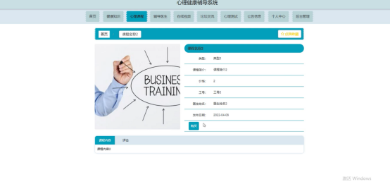 心理课程模块:课程信息发布、课程封面展示、课程分类管理、课程购买下单、订单信息管理、课程评论互动