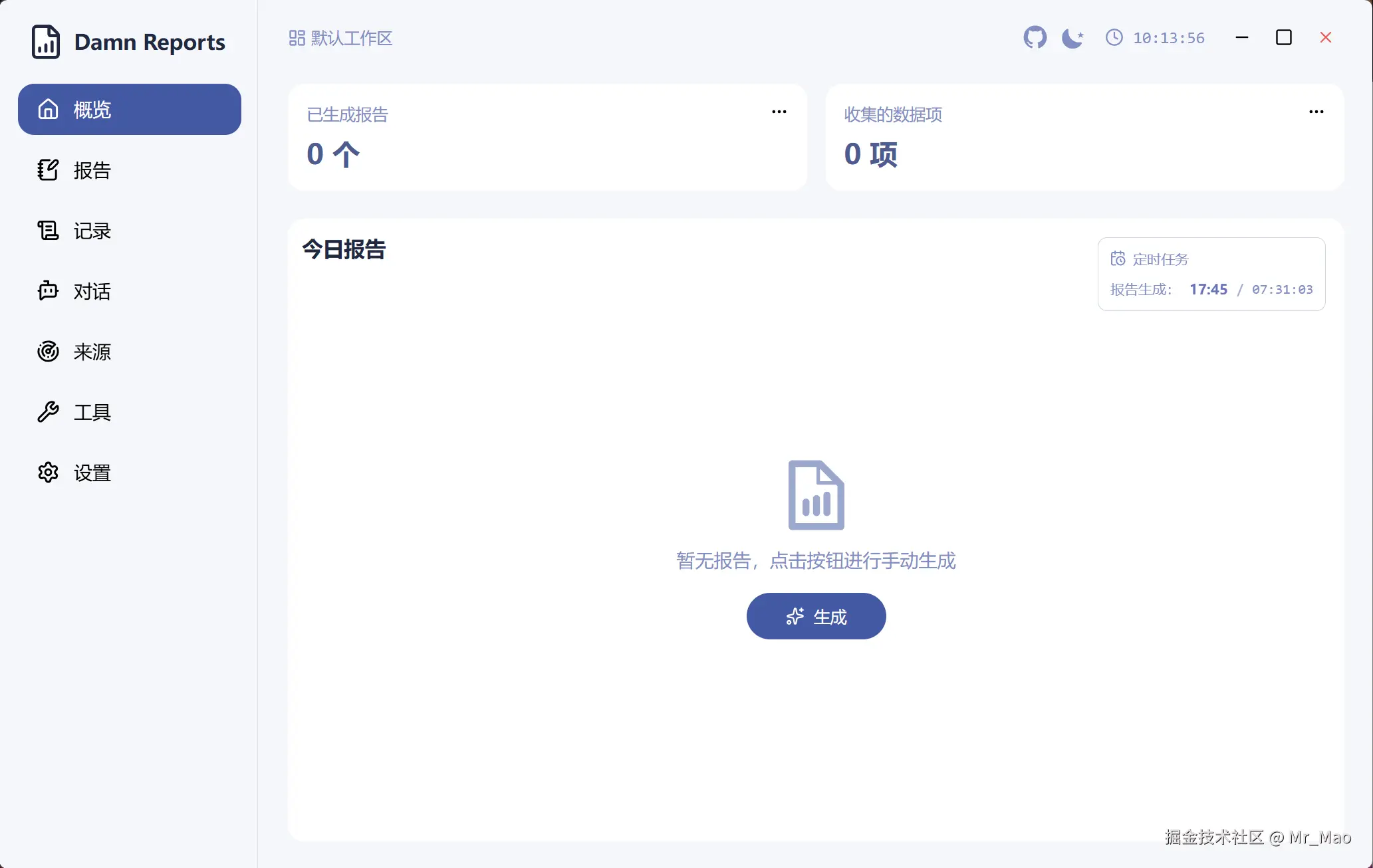 于是,我参考了 OpenClaw 的思路,基于 Vercel AI SDK 手搓了一个"日报生成神器"------Damn Reports