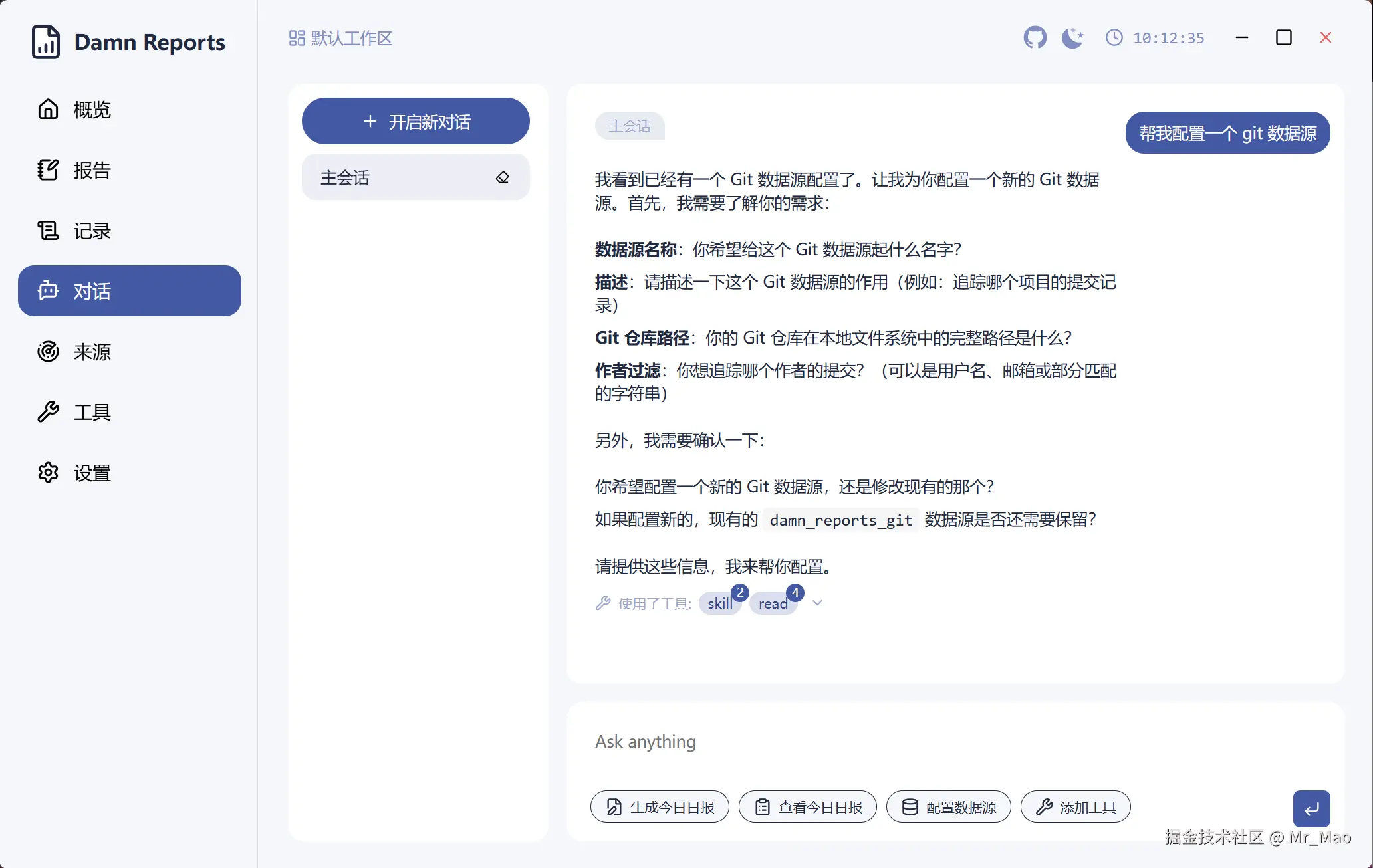 这种回过头翻 Git 记录、翻 Chrome 历史记录、翻笔记软件的行为,简直是对程序员脑细胞的二次谋杀。作为一个推崇"自动化一切"的懒人,我决定:我命由我不由天,日报得靠 AI 填。