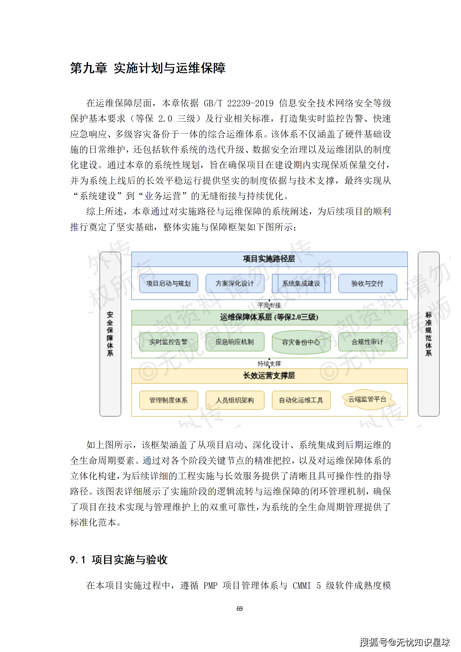 - 安全保障体系: 构建"云 - 网 - 端 - 数 - 用"五位一体的安全防护体系。落实等级保护制度,加强网络安全、数据安全、应用安全和物理安全。采用身份认证、访问控制、数据加密、入侵检测、漏洞扫描等技术手段,确保系统安全稳定运行。建立应急响应机制,定期开展安全演练,提升应急处置能力。