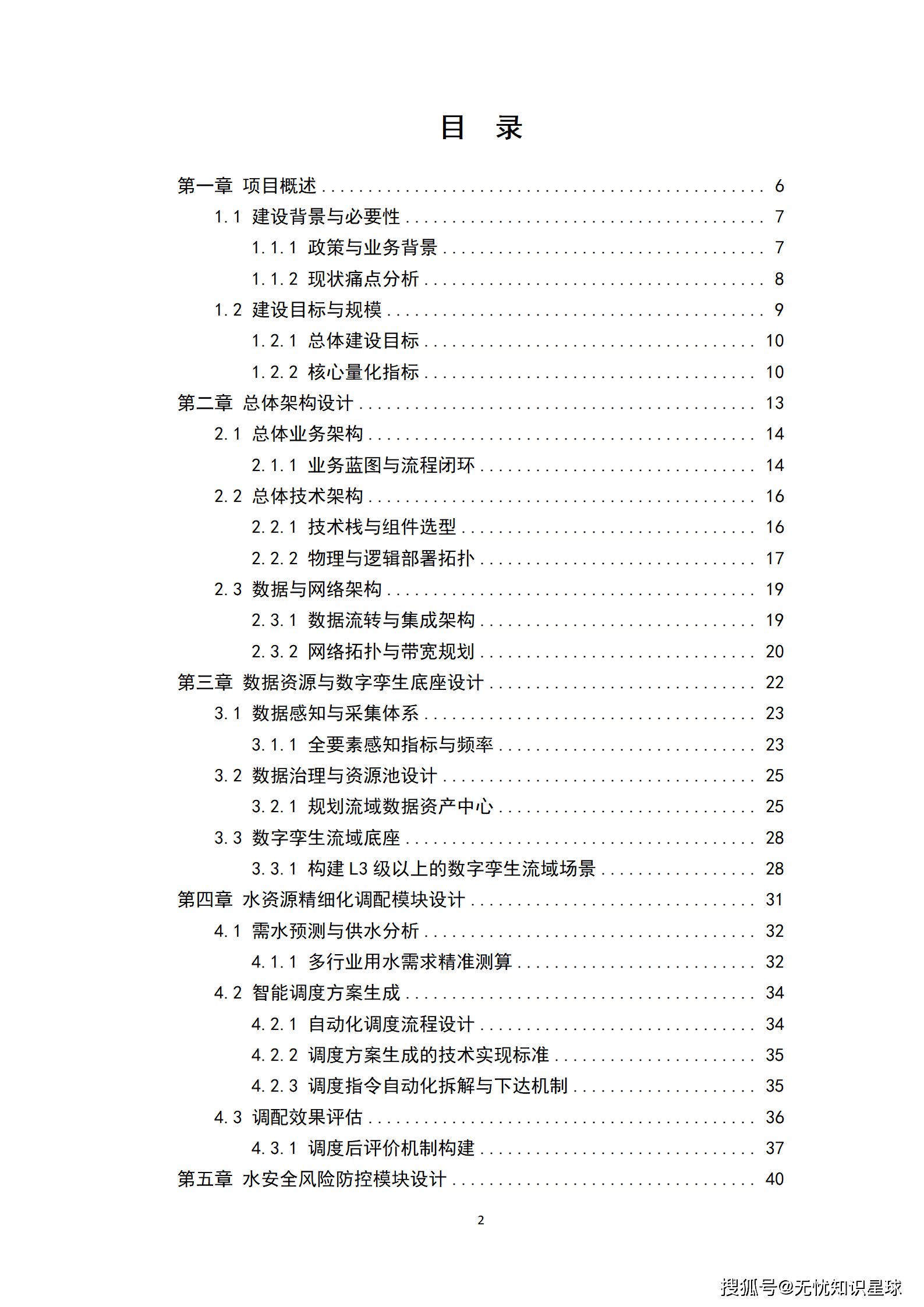 本文所聚焦的《某流域十五五国家水网骨干工程智慧水利调度系统项目》,正是这一宏大叙事下的微观缩影与核心实践。该项目不仅仅是一个信息化系统的建设方案,更是一场深刻的水利管理革命。它依托云计算、大数据、人工智能、物联网、数字孪生等前沿技术,试图在虚拟空间中构建一个与物理流域完全映射、实时交互、智能演进的"数字孪生流域",从而实现对水资源的精准感知、科学调度、高效管理和智慧决策。