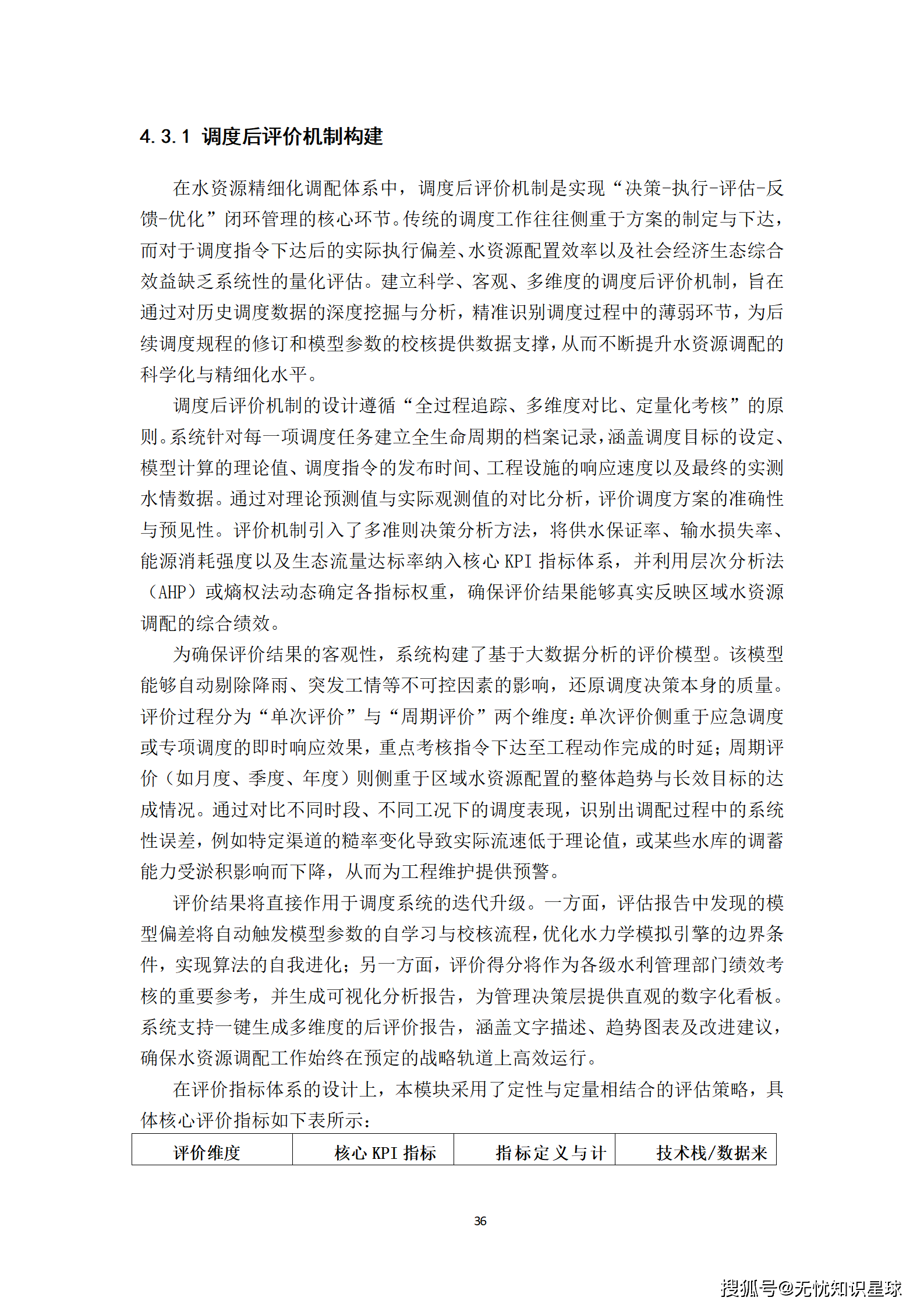 - 智能配水方案: 利用遗传算法、粒子群算法等智能优化算法,求解最优水量分配方案。明确各水库的泄流量、各灌区的配水量、各城市的供水量,以及河道最小生态流量控制指标。