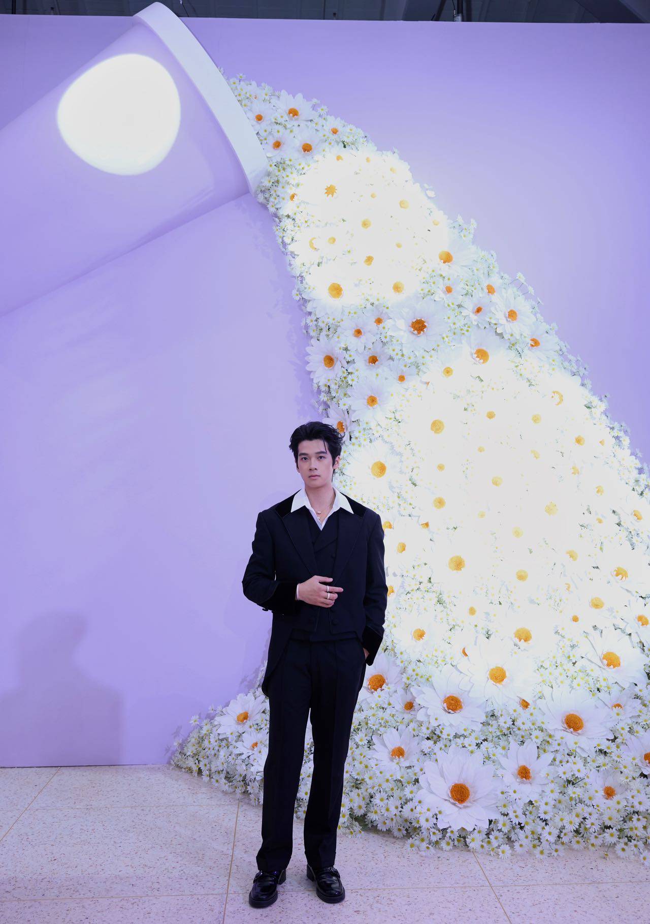 一众星光中,庞钦宇的亮相十分瞩目。他身着层次感十足的黑西装套装:白色翻领与利落剪裁碰撞出复古与现代的平衡,内搭白衬衫微微敞开领口,既消解了正装的刻板,又透出几分不经意的慵懒。简约项链与戒指点缀,将他的身形衬得愈发挺拔。这种克制的华丽,恰好贴合梦幻而不浮夸的调性,让他在一众亮色造型中脱颖而出,自带沉稳而耀眼的气场。
