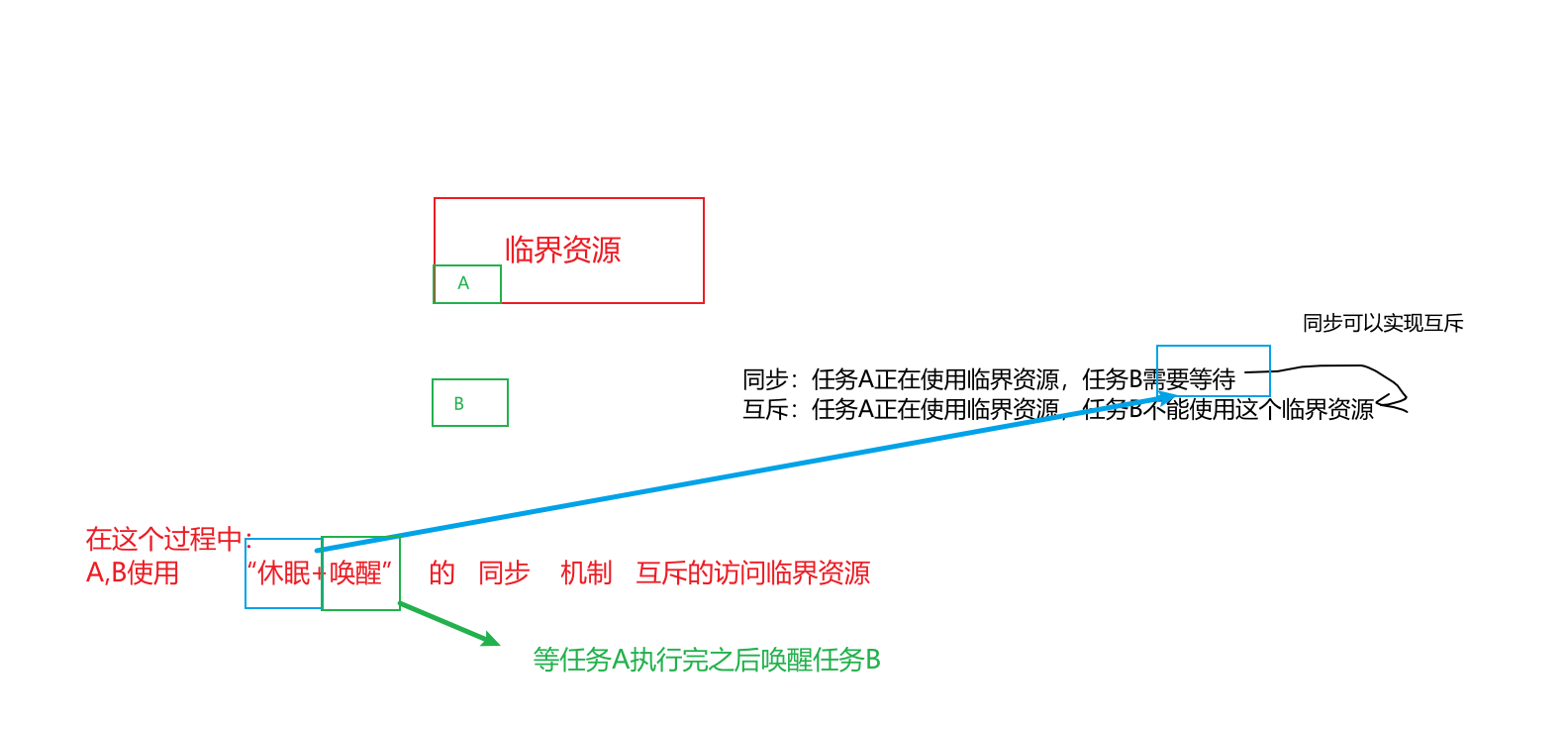 - A获取不到资源则阻塞,B释放资源并把A唤醒