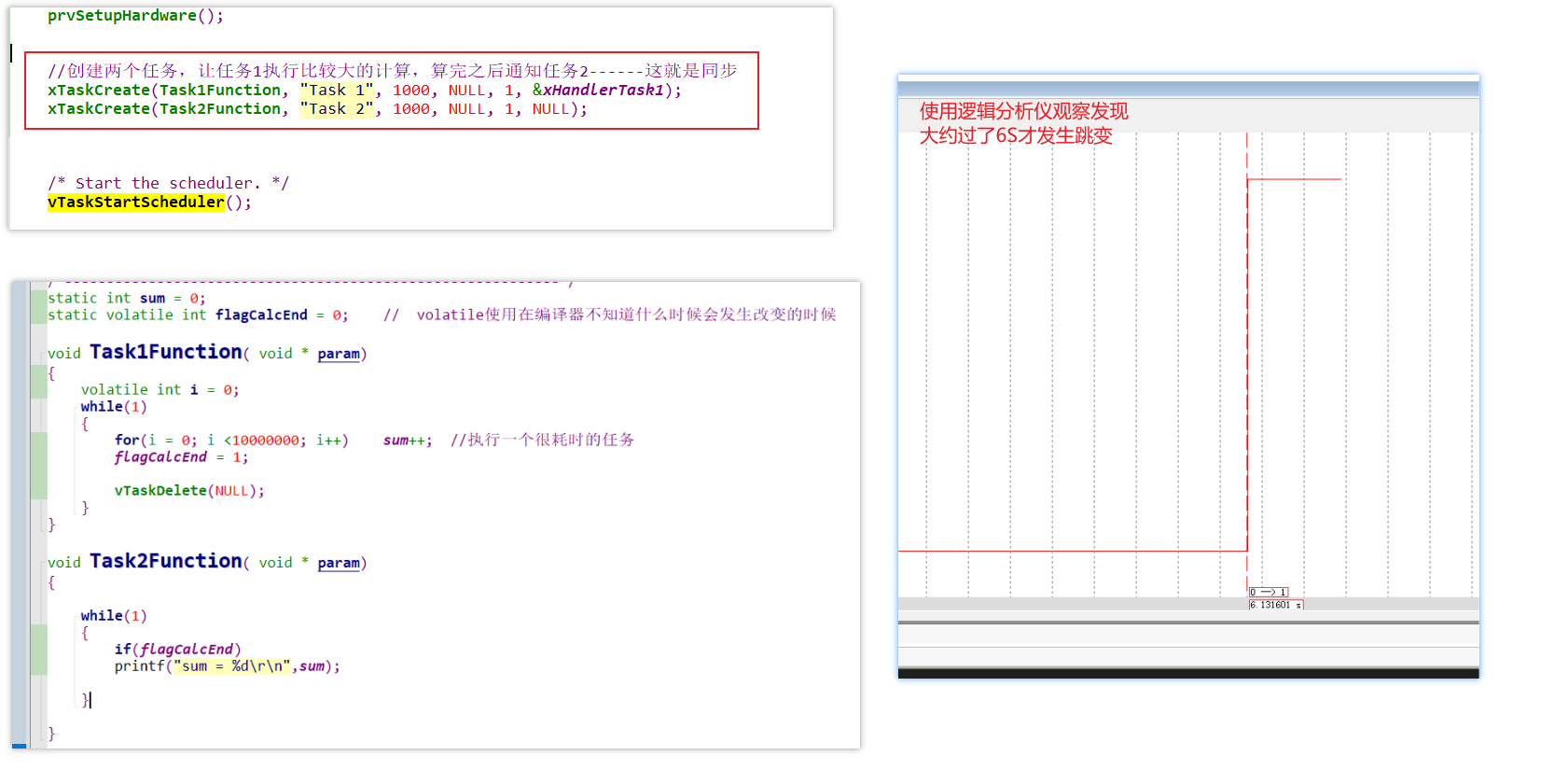 把任务2注释掉重新运行,观察逻辑分析仪