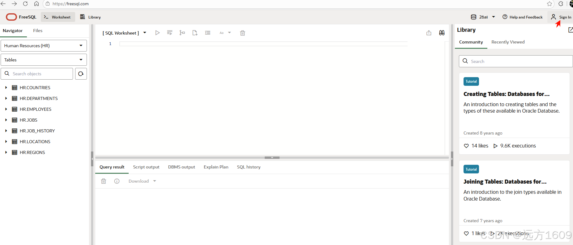 无需购买 Oracle 商业授权、无需配置高规格硬件(本地部署DB)、无需下载安装数 GB 的安装包,打开浏览器访问 https://freesql.com,无需注册即可直接使用,免费版即可满足所有版本的特性验证、SQL 调试需求。