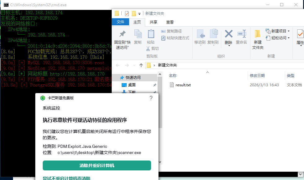 ⚠️ 卡巴斯基动态运行一半就被杀了,检测到 POC 加载触发了,如果没扫到 POC 应该还是能稳一下的。