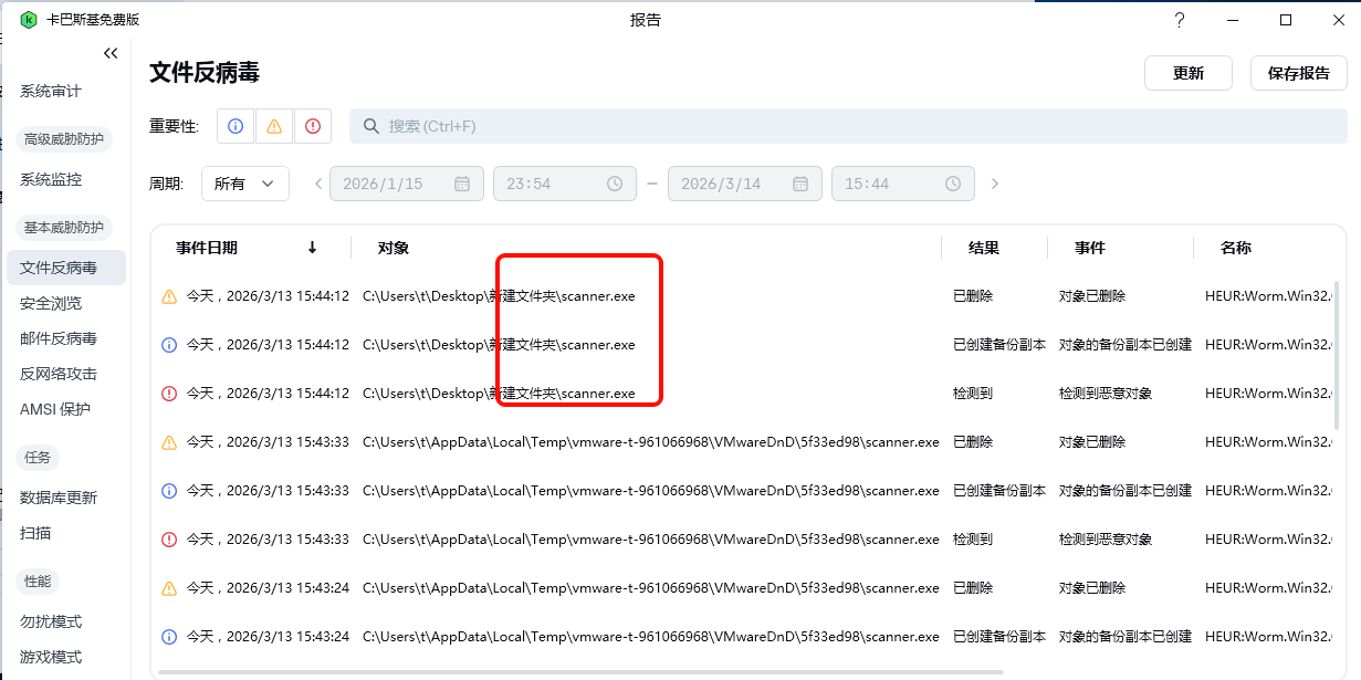❌ 结果:卡巴斯基依然杀,火绒也杀了,加