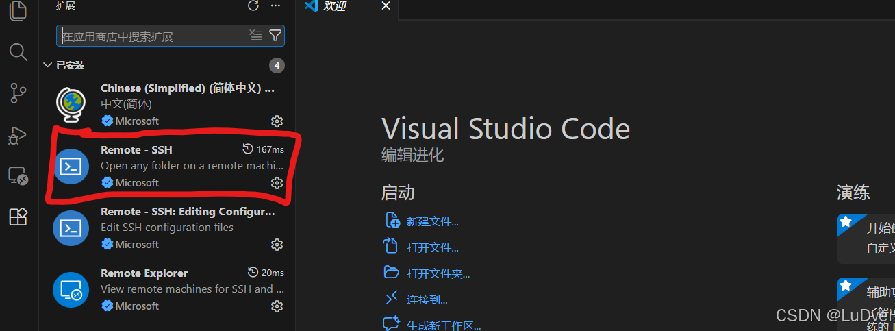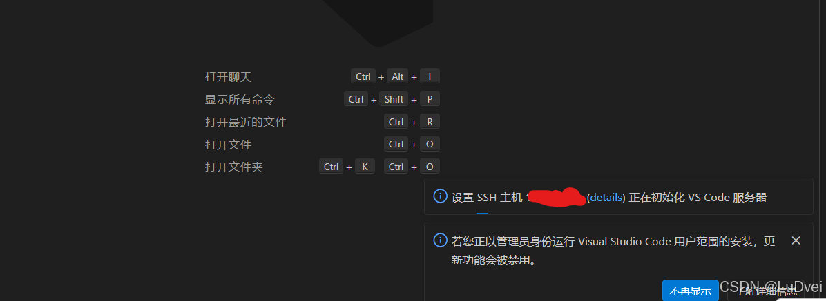 注意上方输入主机名称,密码,初始化完成后,下载vs code 服务器,之后左下角显示已连接的IP,完成连接