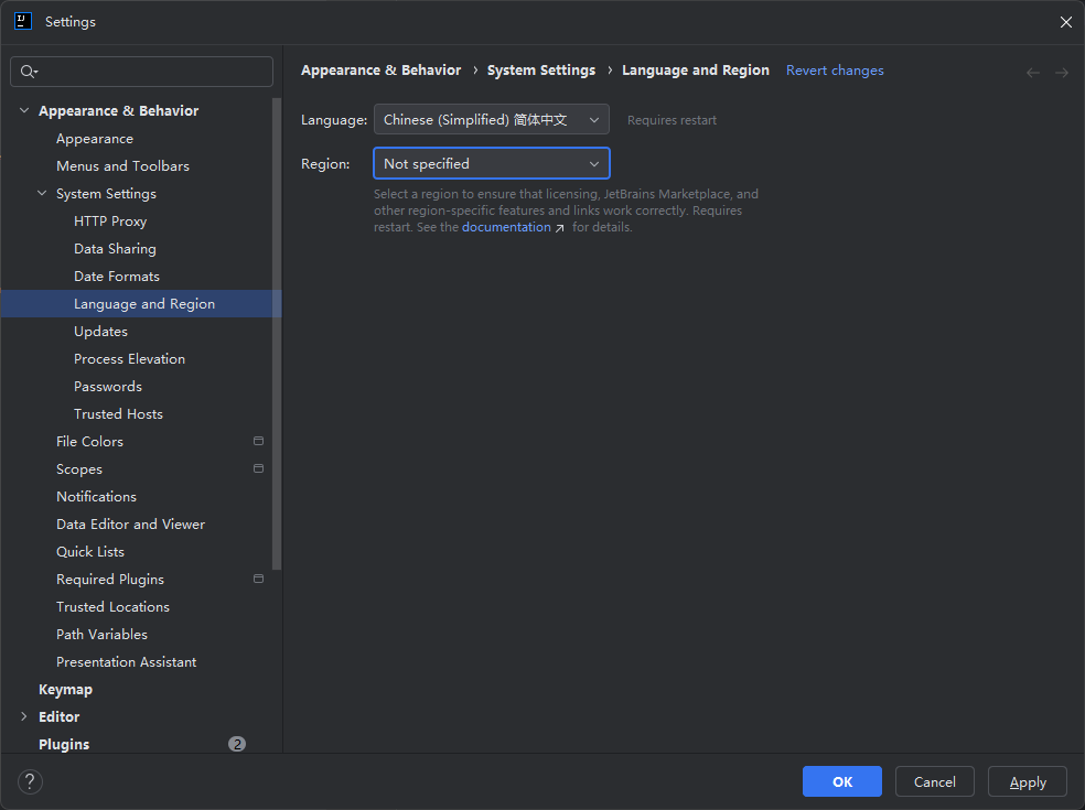 当前使用的idea已经内置了汉化,无需像以前来安装汉化插件,我们只需点击左下角设置中启用即可
