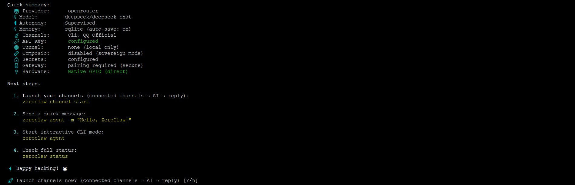 显示如下即为 ZeroClaw 安装成功