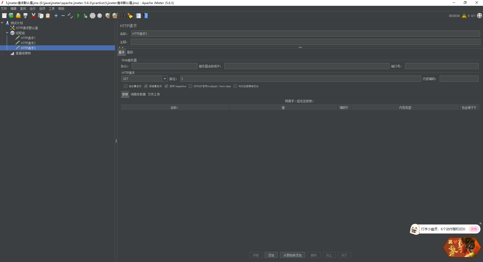 注意:http请求默认值放在测试计划下,则对所有线程组生效。放在某一线程组下则只对此线程组生效。