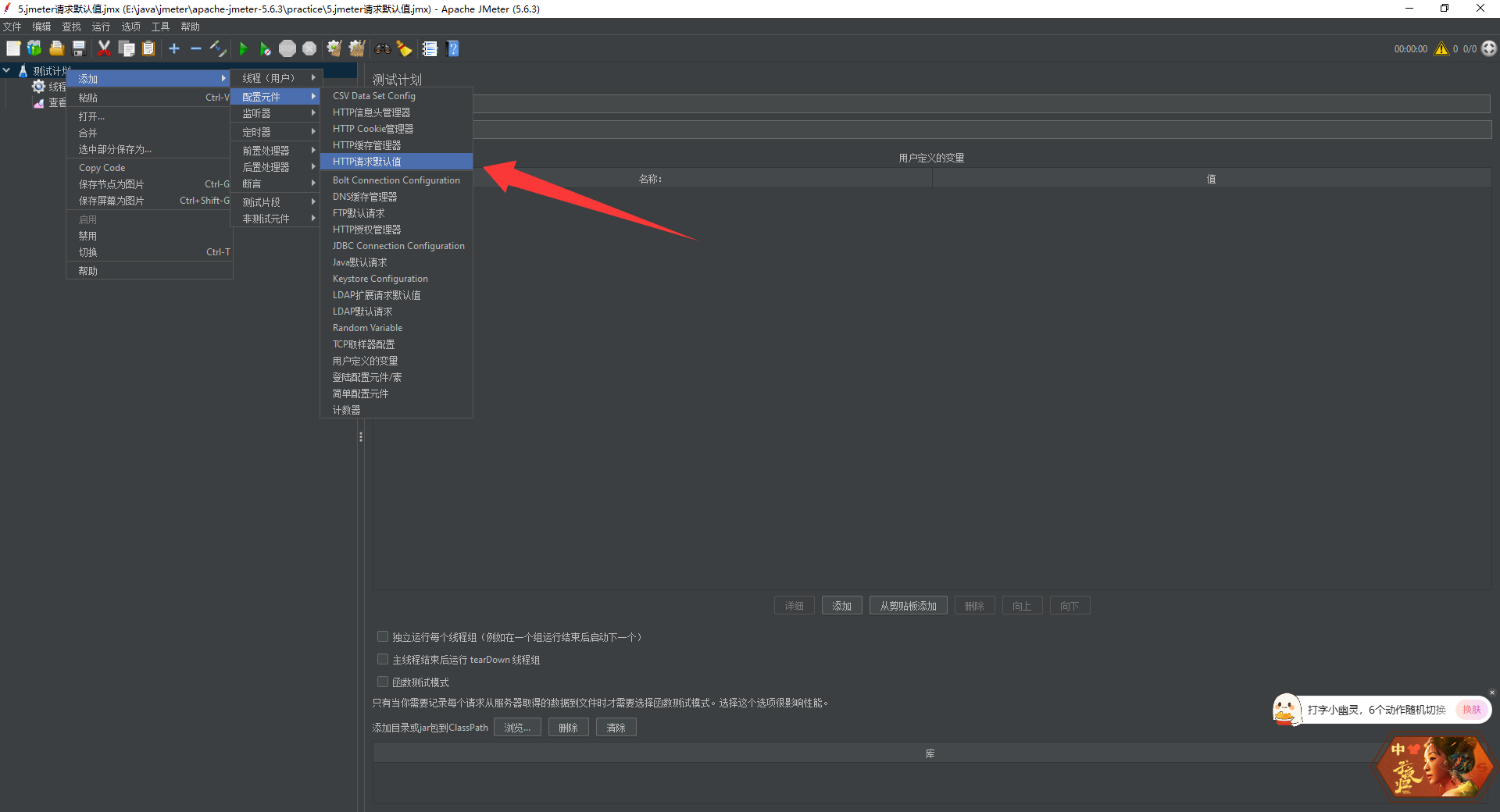 添加路径:测试计划右键-添加-配置元件-Http请求默认值