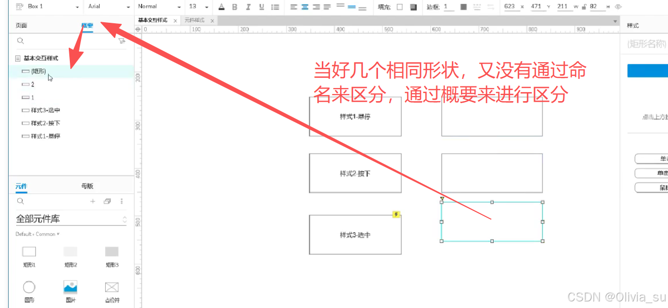 ③选中样式,单击后不再变化,此时预览没有反应;实际上需要再添加一个交互,才能让系统明白我单击就代表要选中了。
