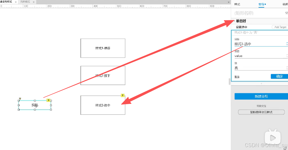 如果想要实现,单击按钮选中样式3,就需要对按钮进行交互设置-单击时-选中-样式三