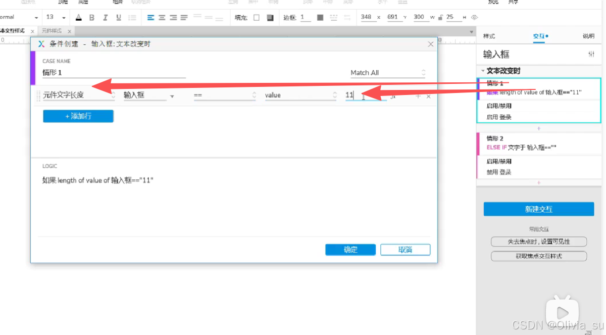 单击上图右上角的enable cases,设置条件,当文本框中不等于空,就是只要有内容就转为启用状态
