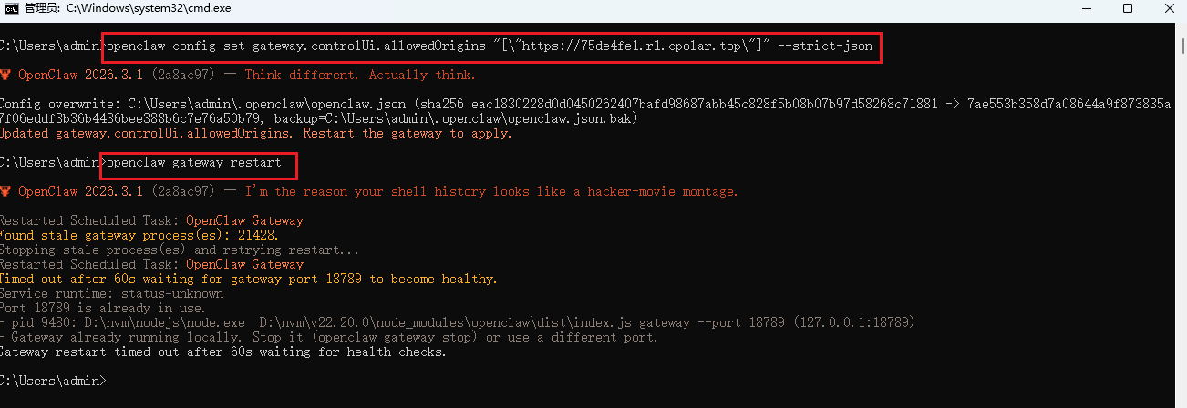 openclaw config set gateway.controlUi.allowedOrigins "[\"https://75de4fe1.r1.cpolar.top\"]" --strict-json
