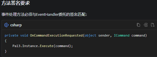 使用scriptRunner.OnCommandExecutionRequested += OnCommandExecutionRequested;来订阅事件,-=来取消订阅