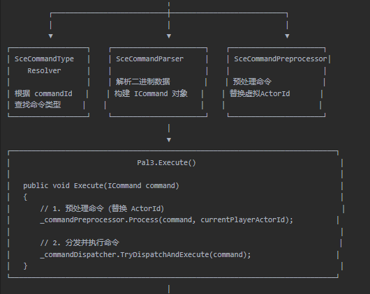 Pal3.cs中的Execute才是真正负责命令执行的部分(其中组合了preprocessor和dispatcher)