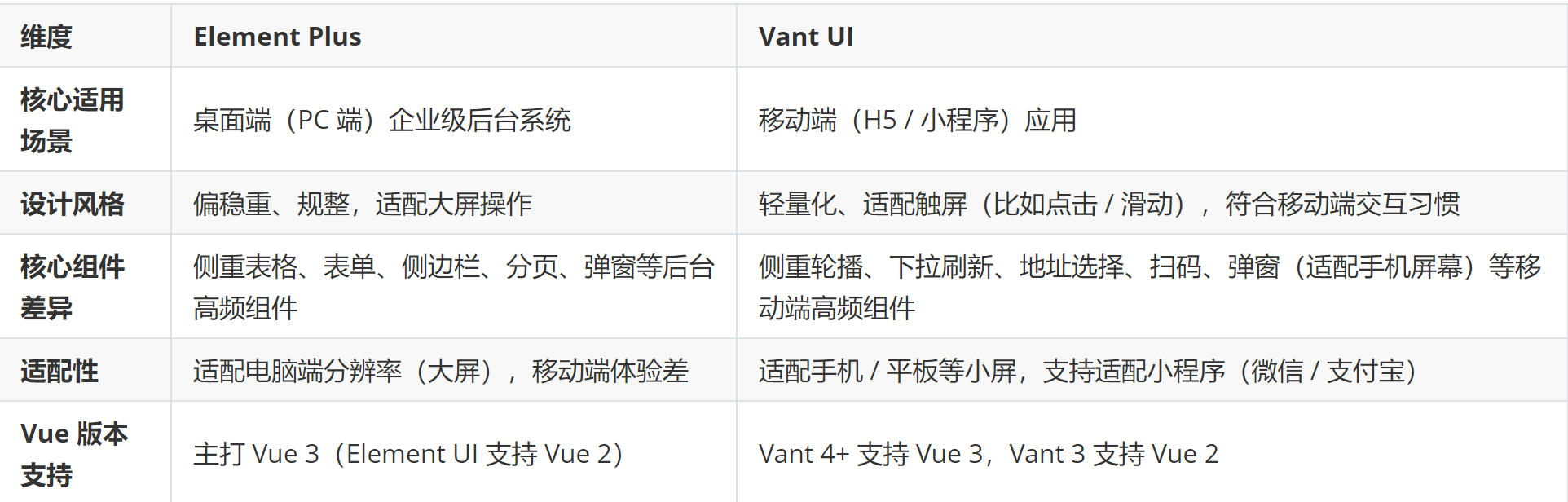 Element Plus 和 Vant UI 区别