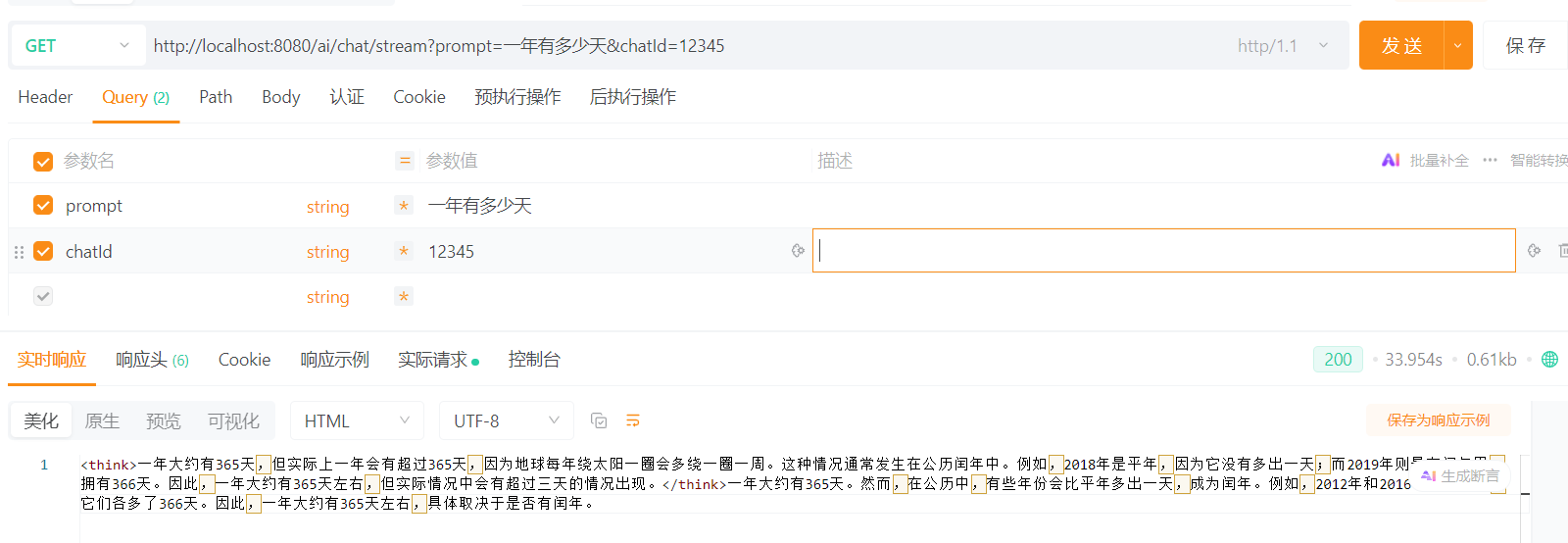 通过调用API进行测试,得到结果如下: