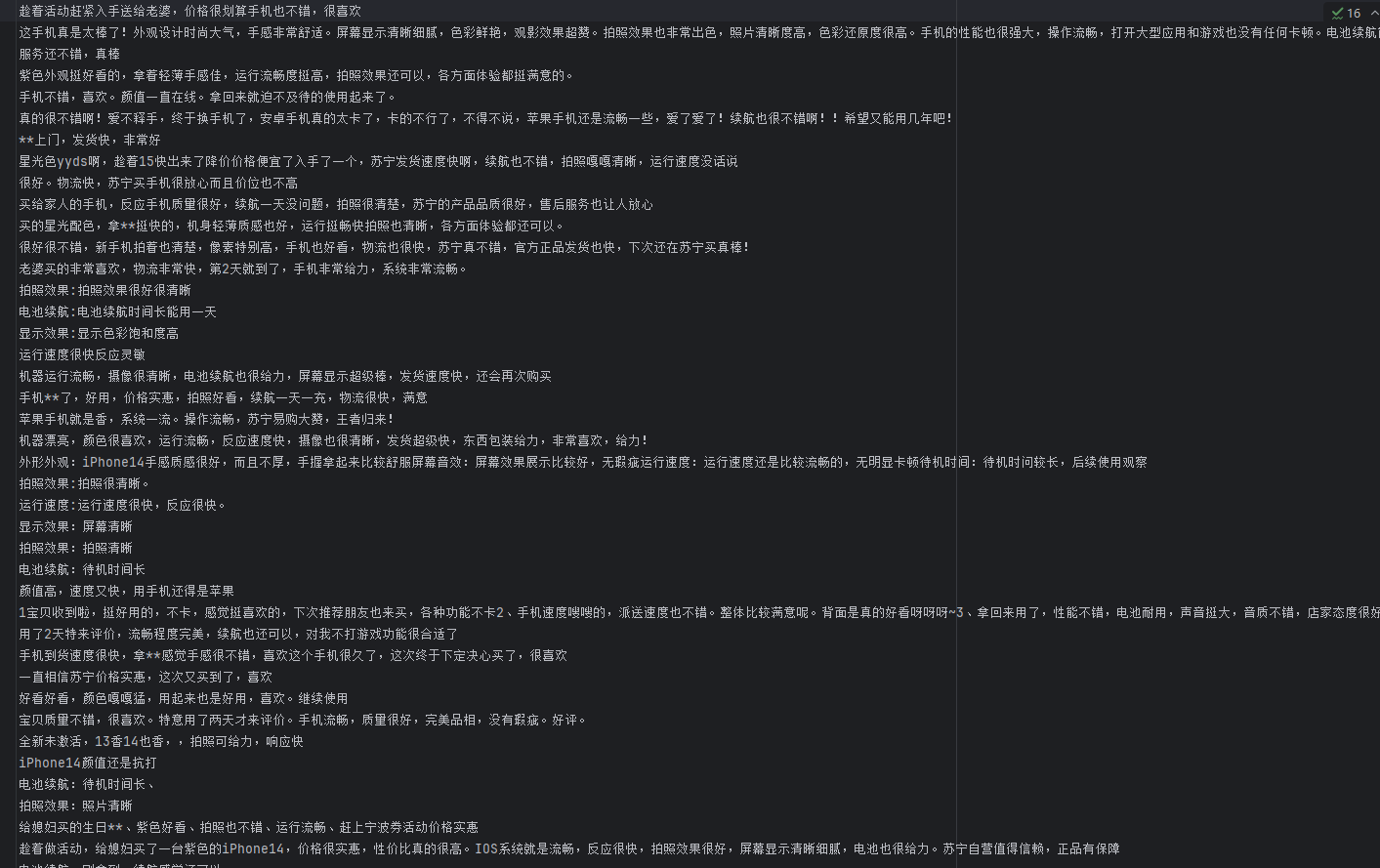 有个苏宁上爬取的关于某品牌手机的评论,一个好评与一个差评文件