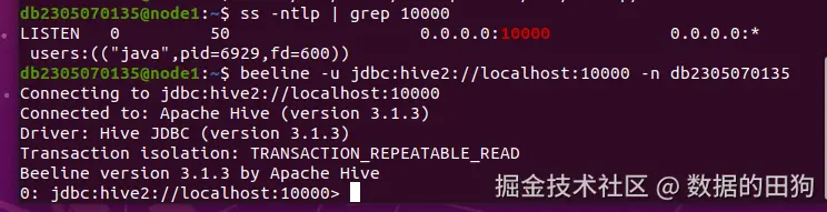 - 服务状态:HiveServer2 已正常启动(端口 10000 监听)✅
