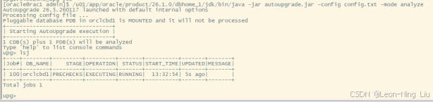 /u01/app/oracle/product/26.1.0/dbhome_1/jdk/bin/java -jar autoupgrade.jar -config config.txt -mode analyze