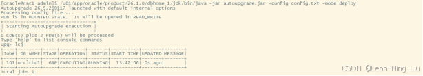 /u01/app/oracle/product/26.1.0/dbhome_1/jdk/bin/java -jar autoupgrade.jar -config config.txt -mode deploy